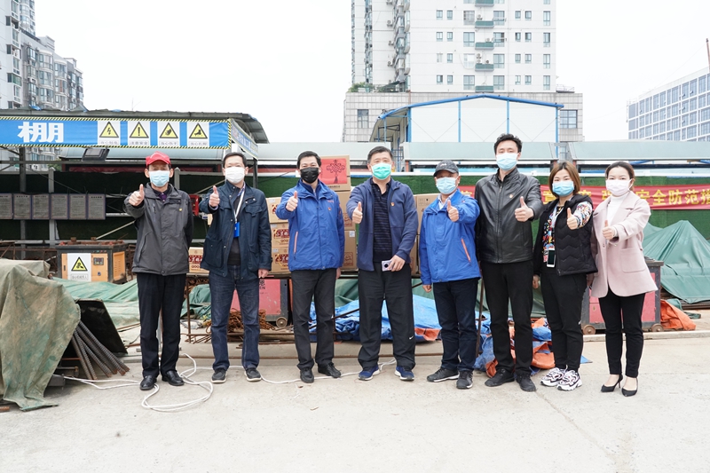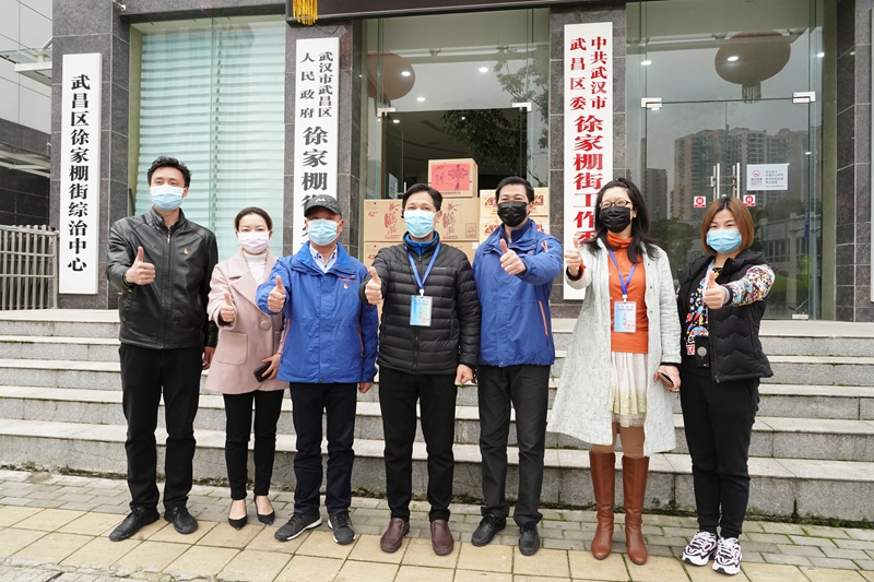 黃鶴樓街道黨工委書記劉曉明,街道辦事處主任山峰,首義路街辦事處主任李愛武,徐家棚街道黨工委書記金光偉,黨政辦副主任熊菊花代表各自單位接受物資。